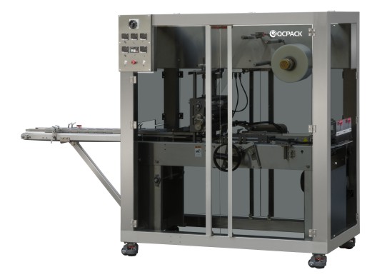 本機(jī)適用于各行業(yè)中的單件盒式物品的薄膜自動(dòng)包裝(帶金拉線)。本機(jī)整體機(jī)架采用碳鋼噴塑、落地多開安全門結(jié)構(gòu),采用平推式推盒結(jié)構(gòu),更換模具簡單,調(diào)節(jié)距離多處采用手搖式調(diào)節(jié)尺寸,大大節(jié)省換模具時(shí)間,固定膜處采用氣漲軸輥固定,使換膜更簡單、快速。