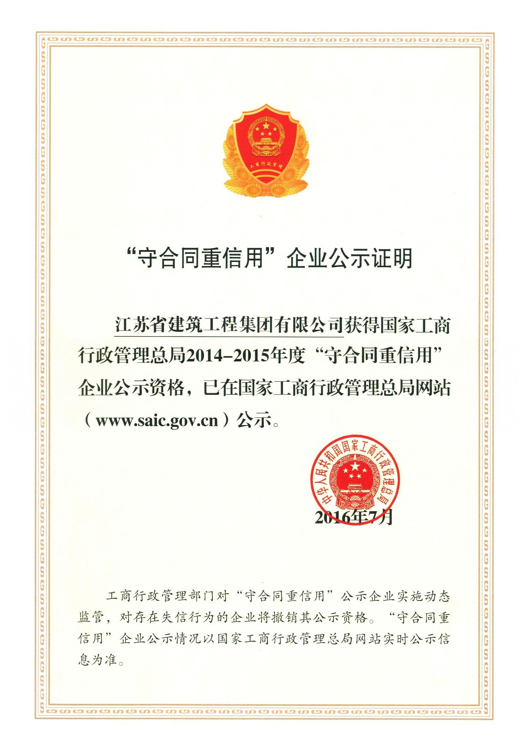 全國守合同重信用企業(yè)