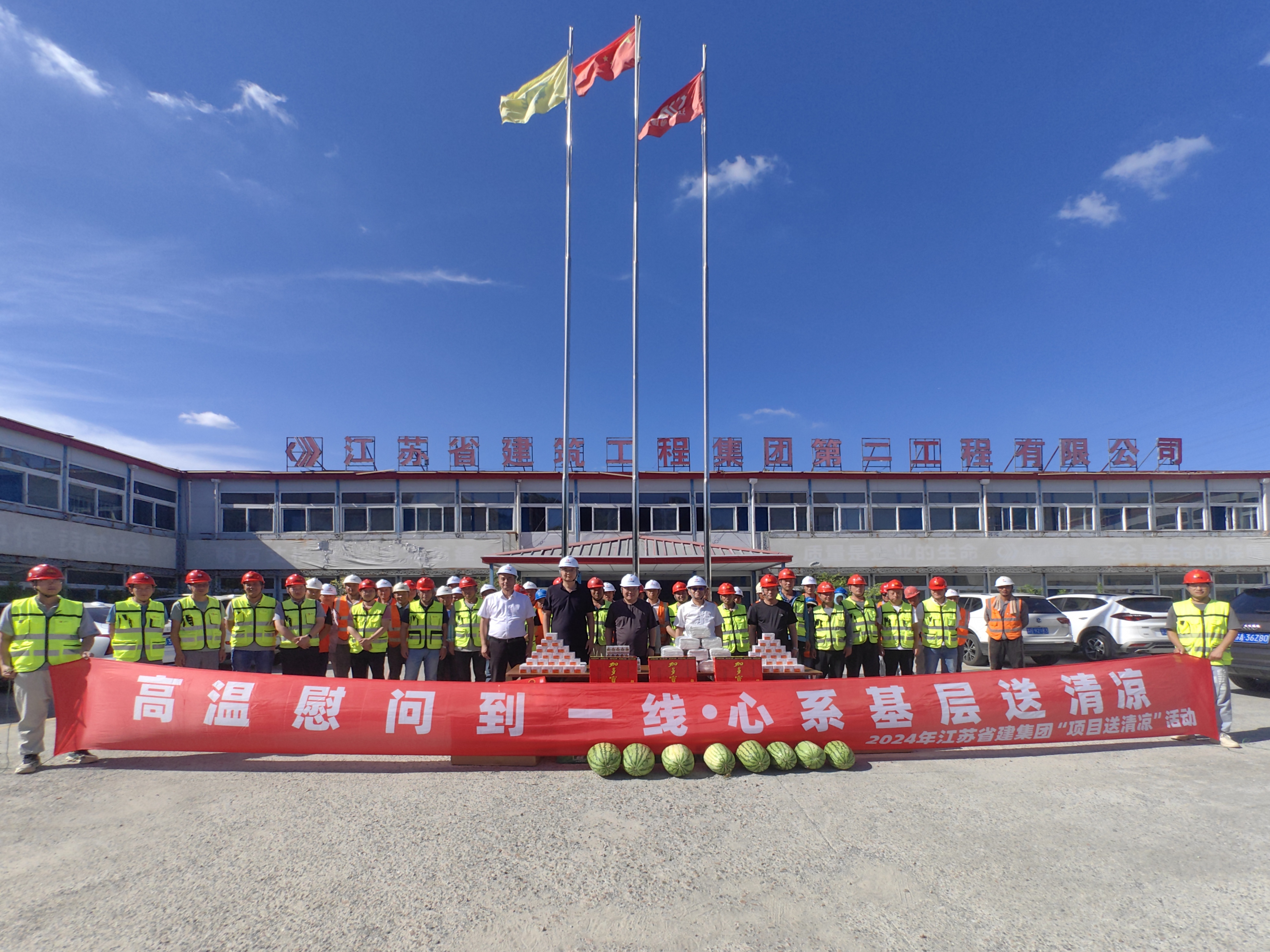 入伏以來氣溫持續(xù)飆升,“烤”驗(yàn)著每一位奮戰(zhàn)在一線的省建人。為確保一線員工的健康安全,7月23日至24日,集團(tuán)黨委書記、執(zhí)行總裁張震宇,副總裁高寶儉分別帶隊(duì),深入“水運(yùn)江蘇”重點(diǎn)項(xiàng)目諫壁船閘擴(kuò)容改造工程以及徐州東郭莊保障房、南京惠民大道綜合改造工程等項(xiàng)目現(xiàn)場(chǎng),開展“高溫慰問到一線 心系基層送清涼”活動(dòng),為奮戰(zhàn)在一線的廣大職工送去集團(tuán)和黨委、工會(huì)的關(guān)懷。