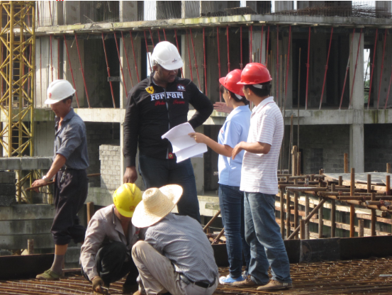 █向外方實(shí)習(xí)生介紹工地建設(shè)情況