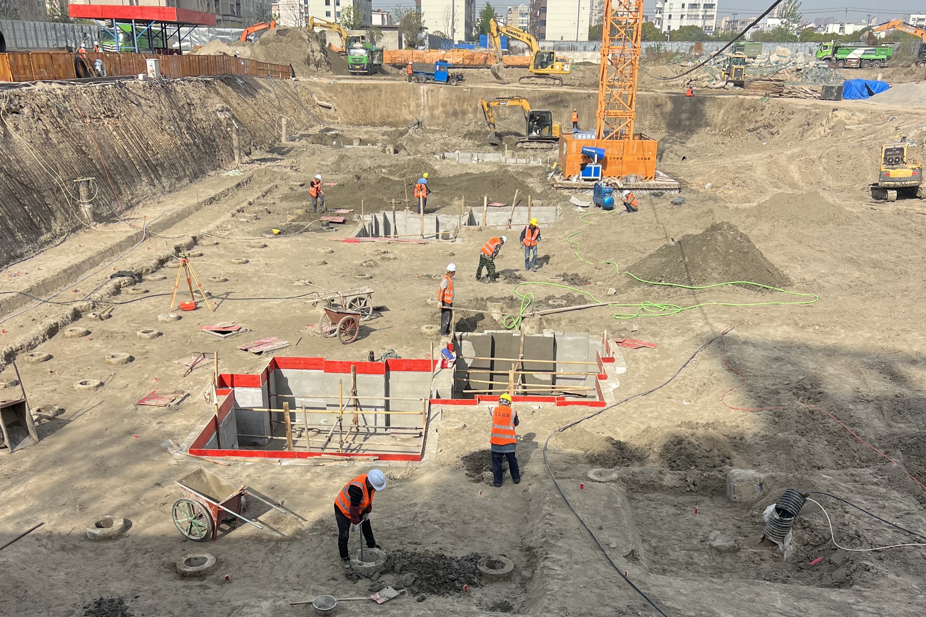 伴隨著機(jī)械轟鳴聲,百余名建設(shè)者搶抓晴好天氣開展施工,堅(jiān)守崗位,連續(xù)奮戰(zhàn),有條不紊地進(jìn)行鋼筋綁扎、混凝土澆筑等工作,爭(zhēng)分奪秒推進(jìn)施工進(jìn)度,聚力突破進(jìn)度瓶頸,助力項(xiàng)目?jī)?yōu)質(zhì)履約。